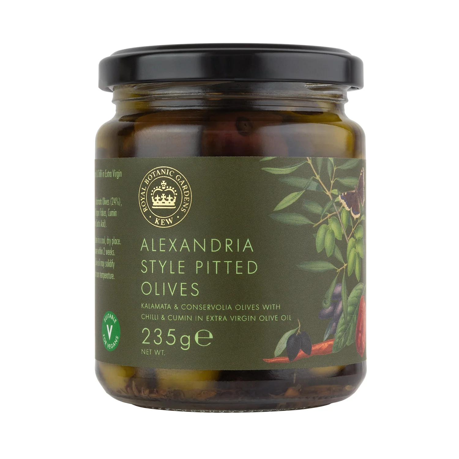 Kalamata & conservolia olives with chilli & cumin in extra virgin olive oil.